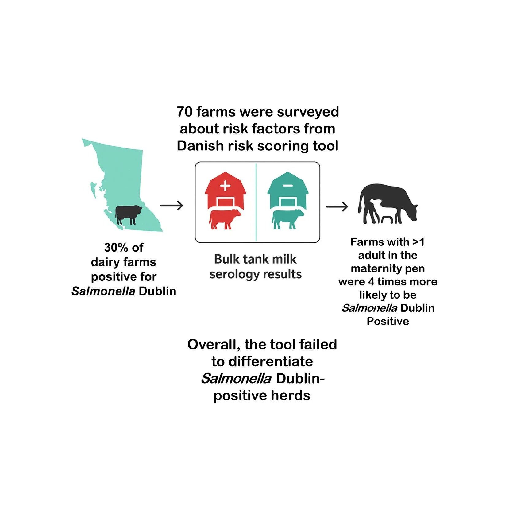 Boyd E, Cuthbert E, Dick J, Renaud D, Himsworth C. 2025. Investigating farm level risk factors for Salmonella Dublin infection and on-farm transmission in British Columbian dairy farms. JDS Communications https://doi.org/10.3168/jdsc.2025-0884